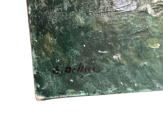 Unsigned. "View With House and Cars". Oil on Canvas.