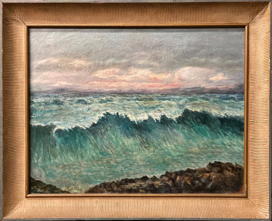 Loris Withers. Barn Scene w Sheep. Oli on Canvas.