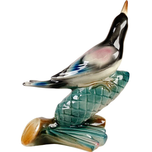 Rose Chested Grosbeak on Pinecone Porcelain Figurine