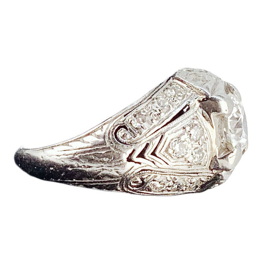 Diamond Ring Set w. 0.90 Carat Stone Mounted in Platinum. c.1930s Culet Cut