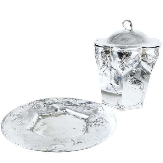 Art Nouveau Orivit Jugendstil Biscuit Barrell w Under-Plate