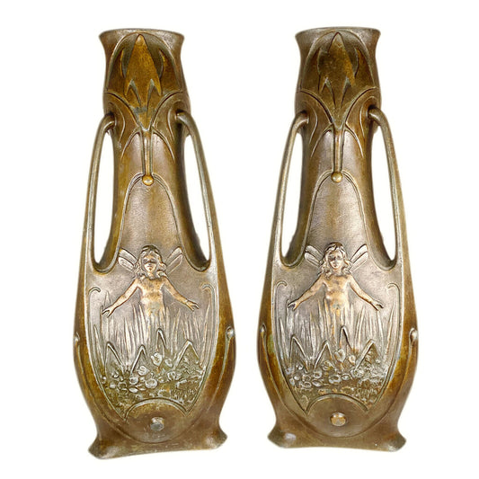 Pair of Jean Garnier Art Nouveu Spelter Fairy Vases