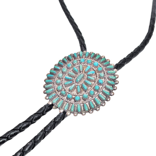 Vintage Zuni Turquoise Petit Point Bolo Tie