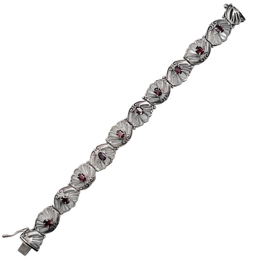 Vintage Art Deco Style Silver And Garnet Bracelet