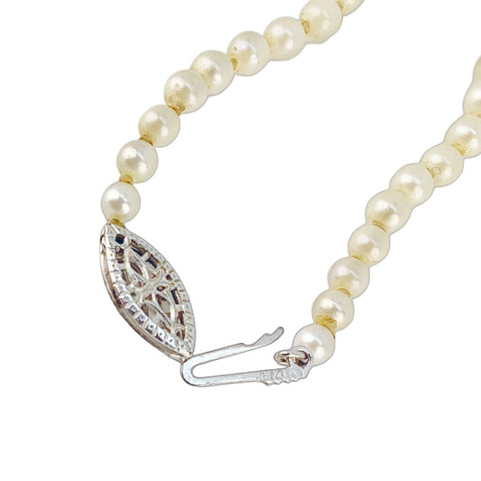 Graduated Pearl Necklace w 14Kt Gold & Sm Diamond Fishhook Clasp