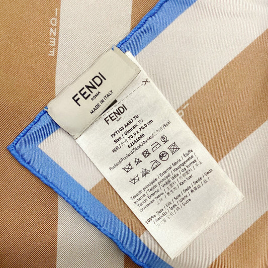 Fendi Cream & Brown Striped w Blue Boarder Silk Scarf (Orig $475)