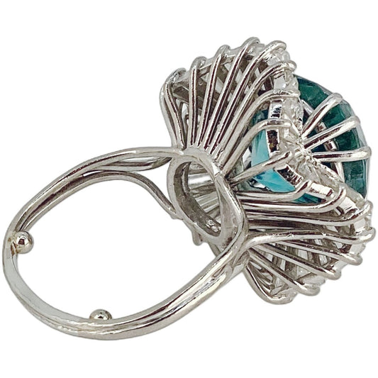 Blue Zircon Surrounded by 32 Tapered Baguettes Cut Diamonds Ring Set in Platinum