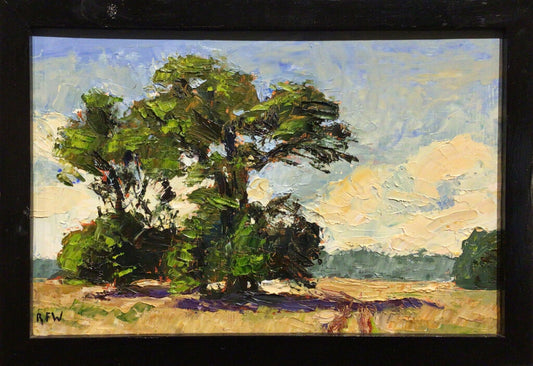Richard Wyvill. Trees in a Field'. Oil on Board.