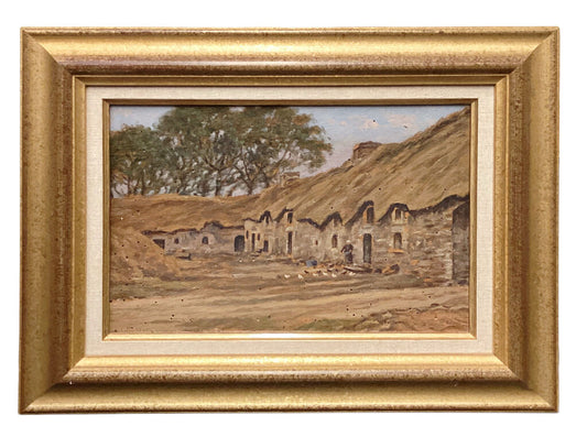 L. Musson. French Barns with Thatched Roofs. Oil on Panel.