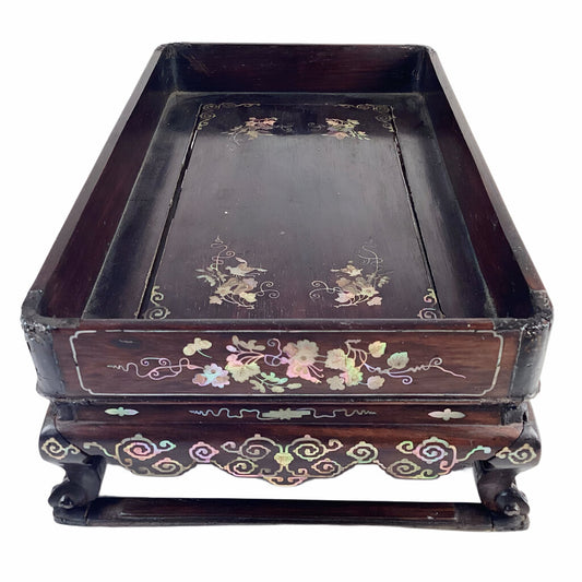 Antique Chinese Rosewood and Mother of Pearl Inlay Stand