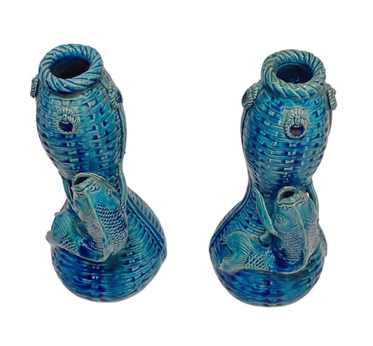 Qing Dynasty Peacock Blue Fish Vases