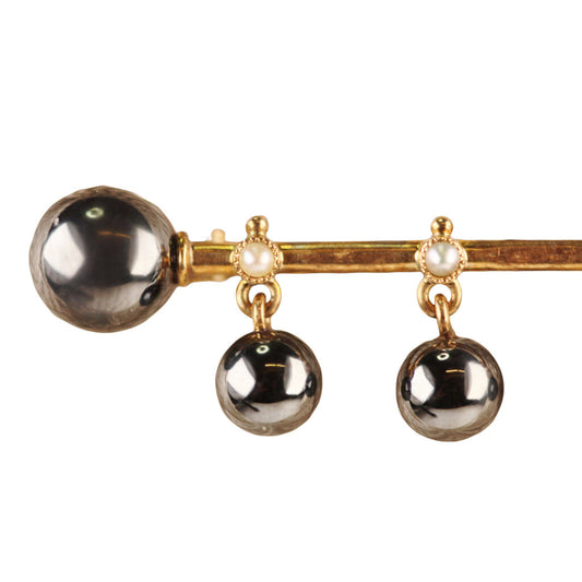 Victorian Hematite & Seed Pearl Bar Pin in Yellow Gold Mount