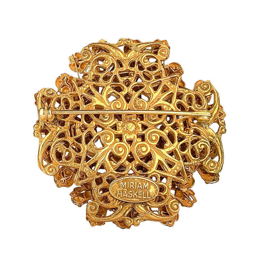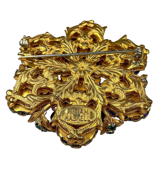 Miriam Haskell Colored Gems Cluster w/Emerald Cut Blue Stone
