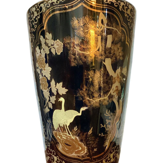 Vintage Black & Gold Qing Style Mallet Vase
