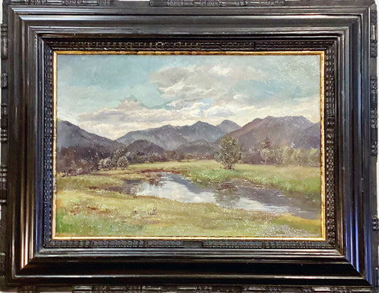 Eduard Schmidt. Summer Landscape w Pond. Oil on Board.