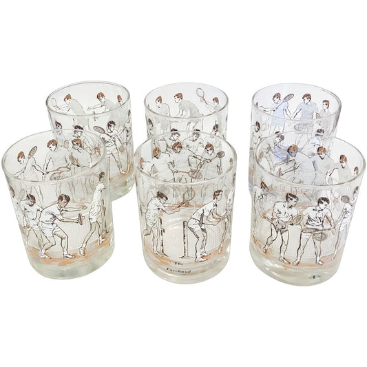 S/6 Vintage "The Forehand" by Cera Cora Tennis Player Cocktail Glasses