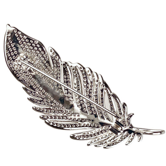 14K White Gold Diamond Feather Brooch