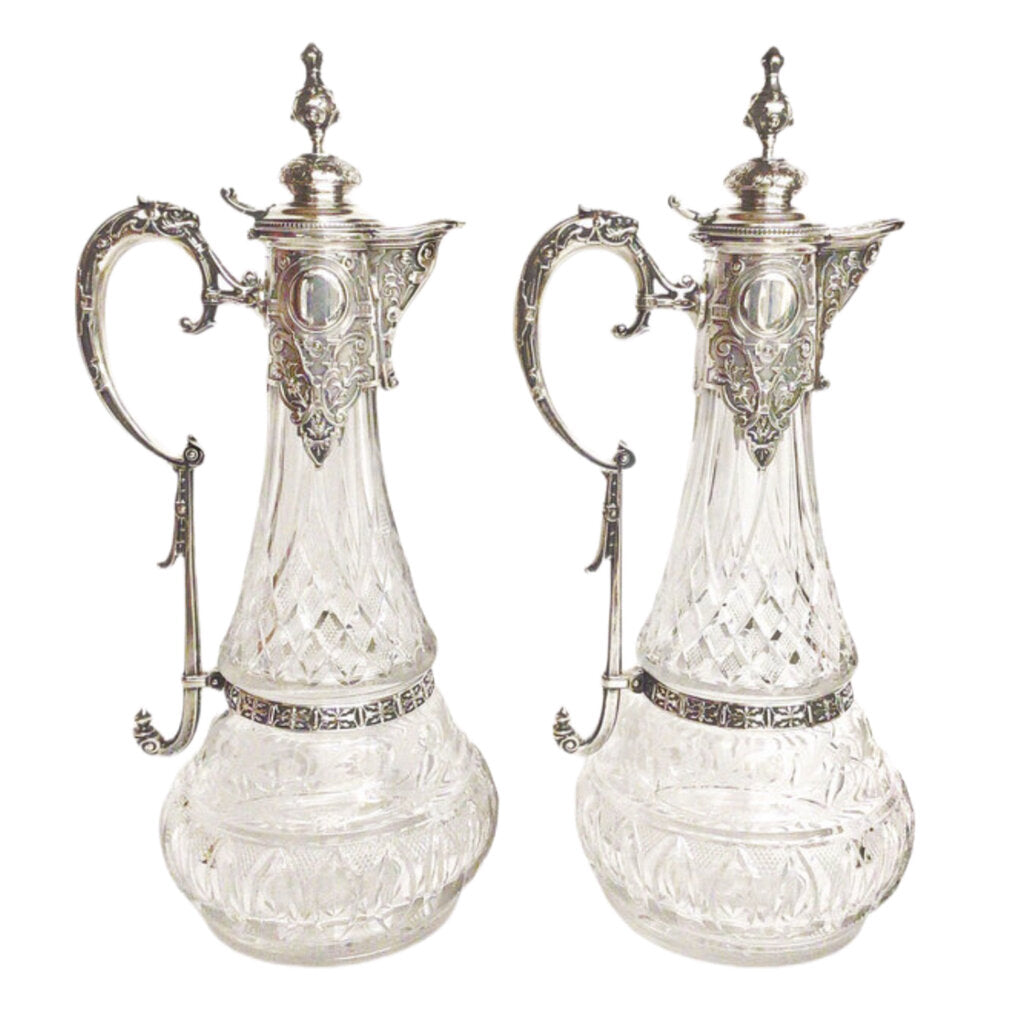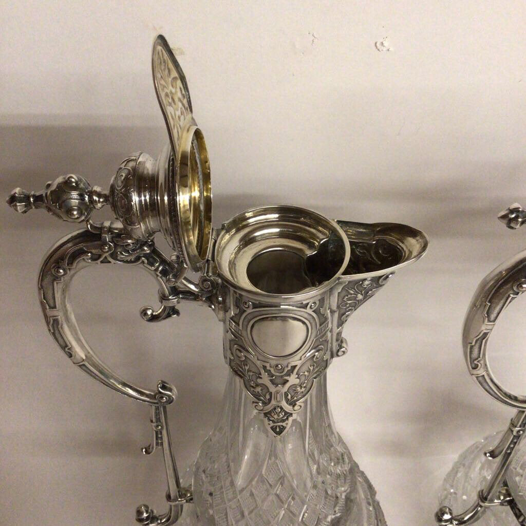 Pair/Continental .800 Silver & Crystal Ewers