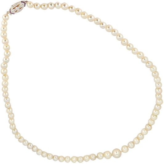 Graduated Cultured Pearl Necklace w Platinum Clasp Set w Diamonds & Sapphires