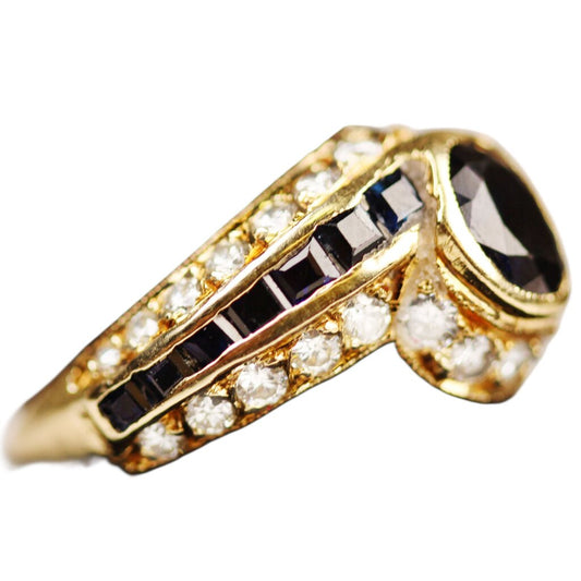 Sapphire & Diamond Tourbillon Ring Set in 14Kt Gold