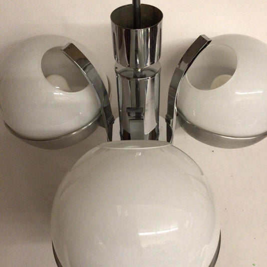 Modernist Chrome & Opaline Glass Chandelier, possibly Lamperti