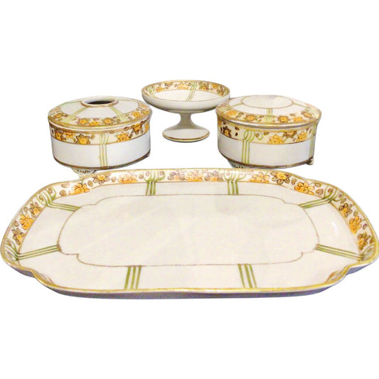 4 Piece Nippon Moriage Hand Painted Vanity Set