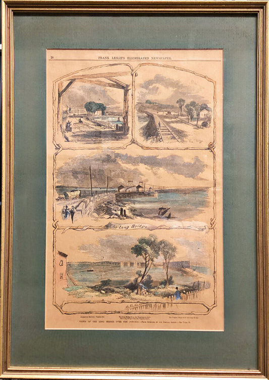 Frank Leslie's Illustrated Newspaper Colored Etching of the DC Long Bridge. Early 1900's.