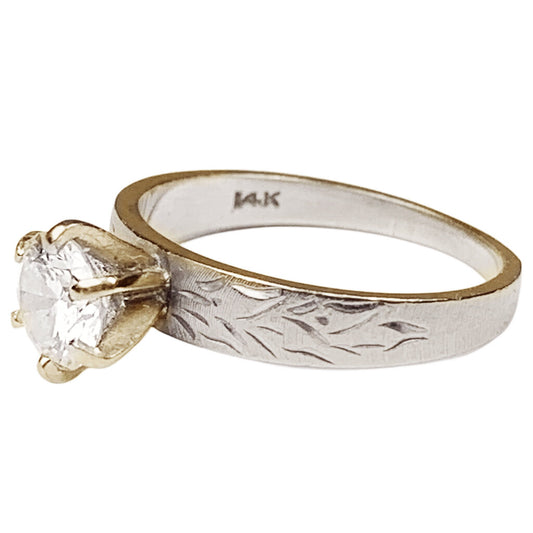 Solitaire Diamond Set in a 14Kt Engraved White Gold Ring