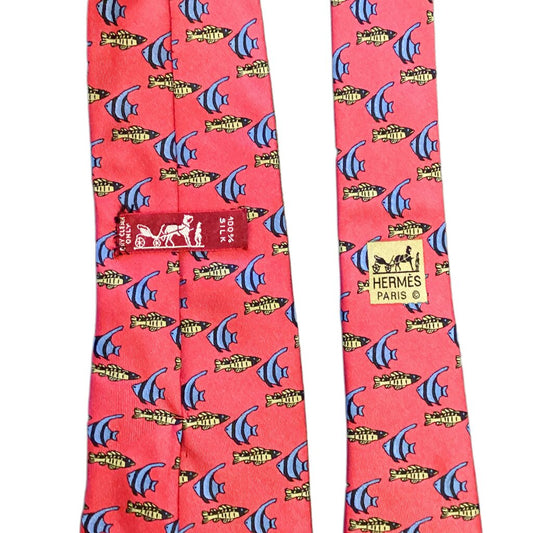 Vintage Hermes. 100% Silk Tie. Red with Fish.