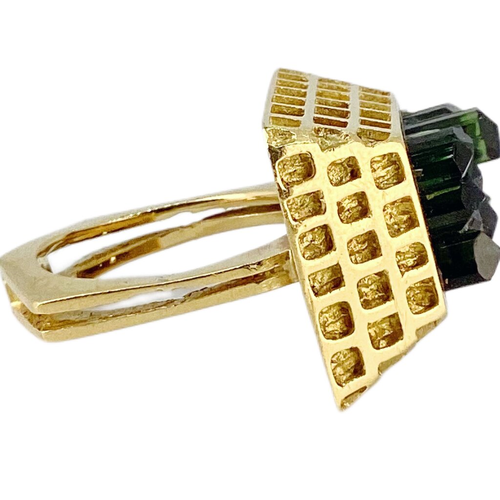 18Kt Gold & Tourmaline Crystals Pyramid Ring