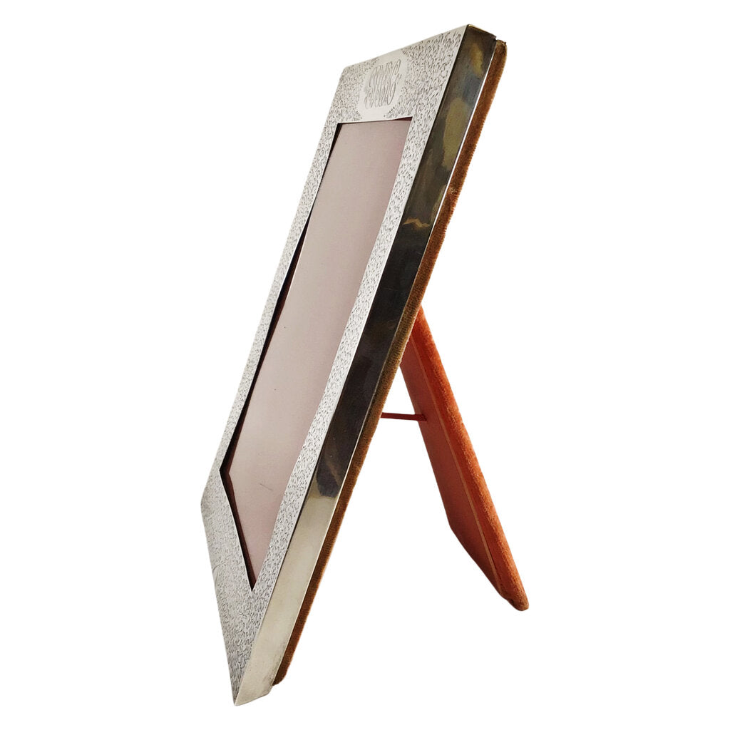 American late Victorian or early Edwardian densely engraved sterling silver picture frame by Mauser Mfg. Co. of New York City, ca. 1887-1903. Monogram at top.