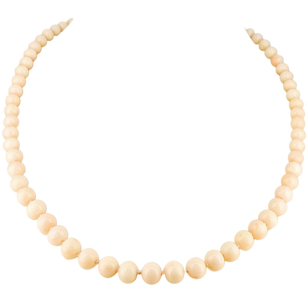 Angel Skin Coral 5mm Bead Necklace. 14kt Clasp. 20"
