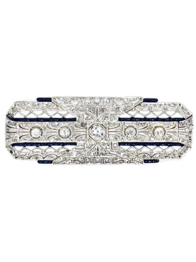 Art Deco Platinum Brooch w Diamonds & Onyx