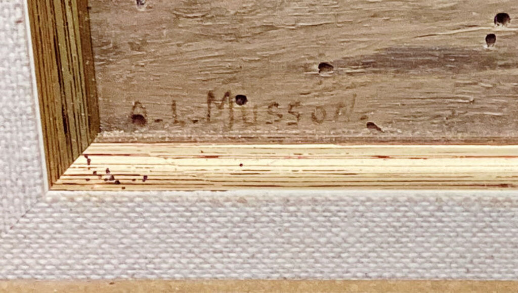 L. Musson. French Barns with Thatched Roofs. Oil on Panel.