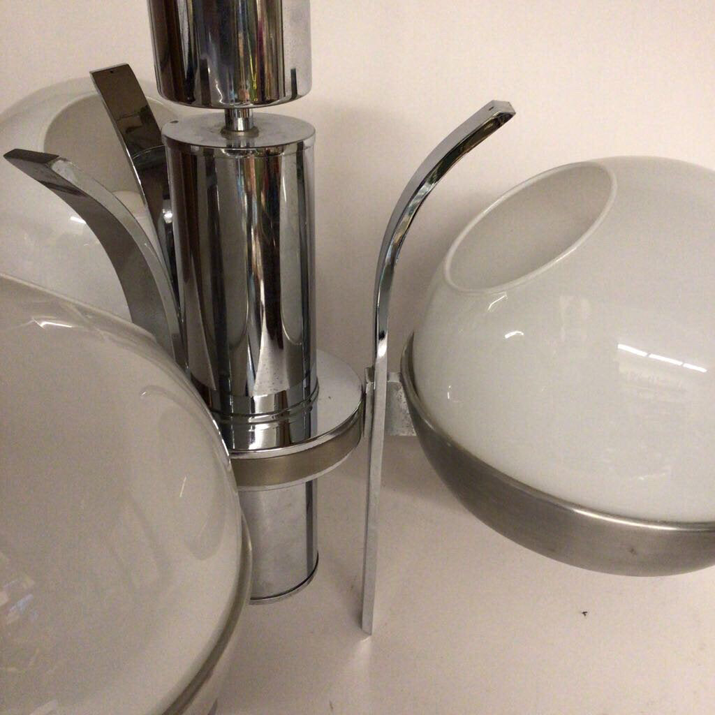 Modernist Chrome & Opaline Glass Chandelier, possibly Lamperti