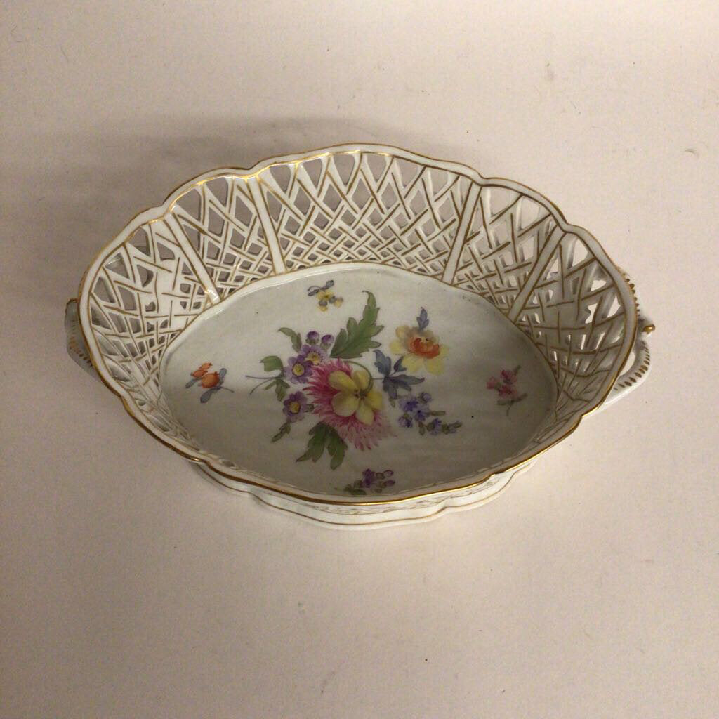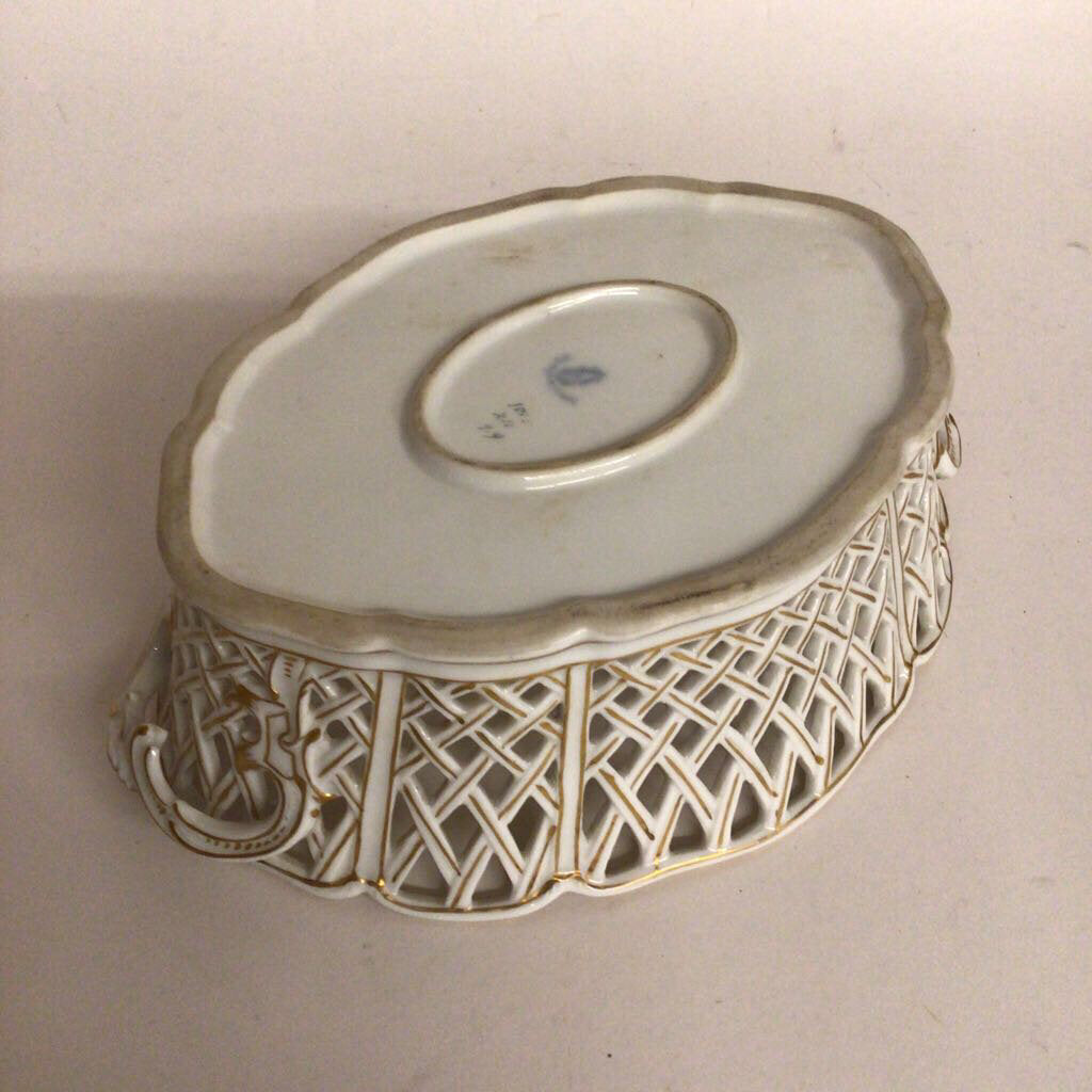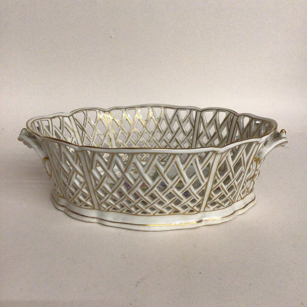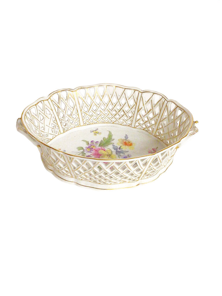 Gilt and hand-painted Nymphenburg reticulated basket, ca. 1895-1910.