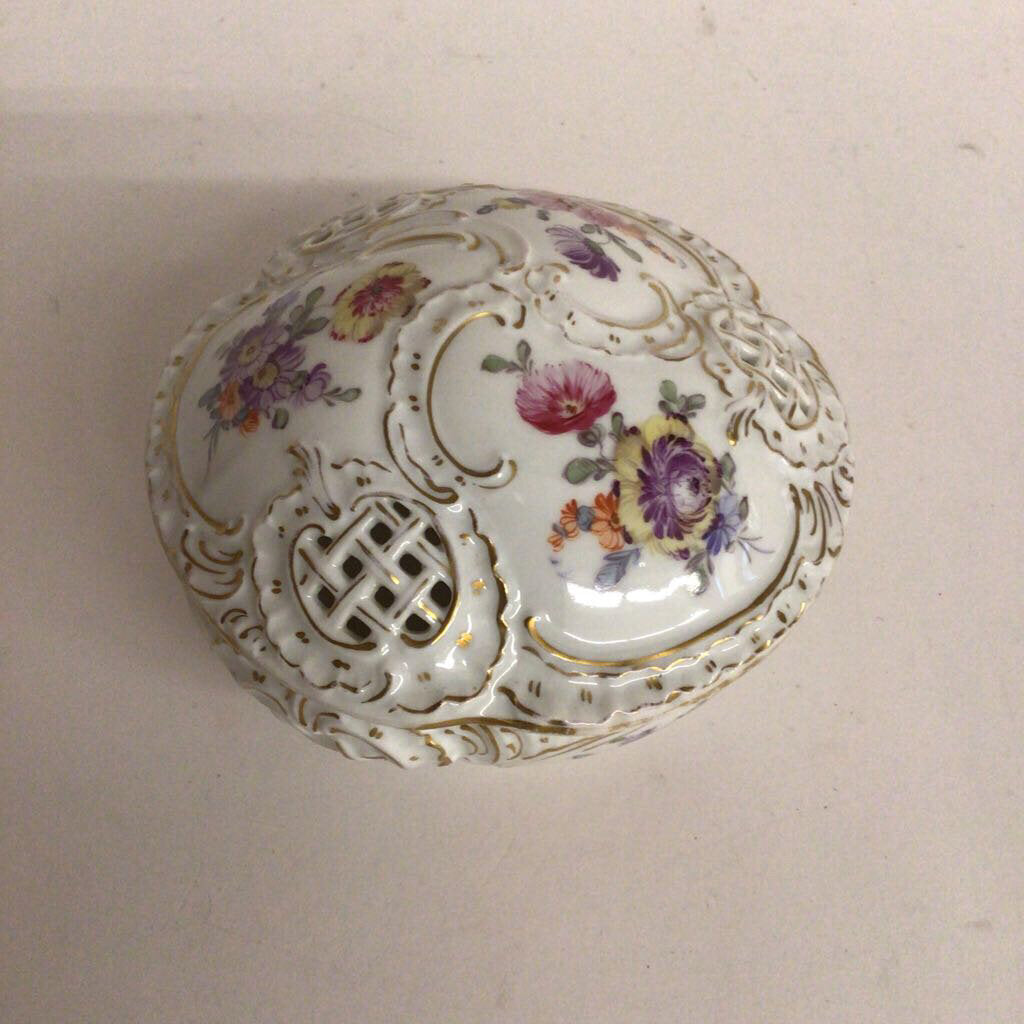 Gilt and hand-painted Nymphenburg reticulated box, ca. 1895-1910.
