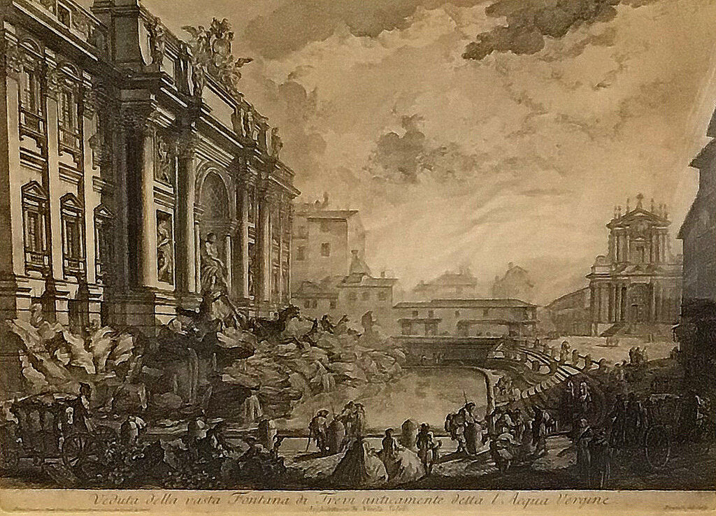 Piranesi Veduta Della Vasta Fontana di Trevi Etching First Paris Edition, circa 1751